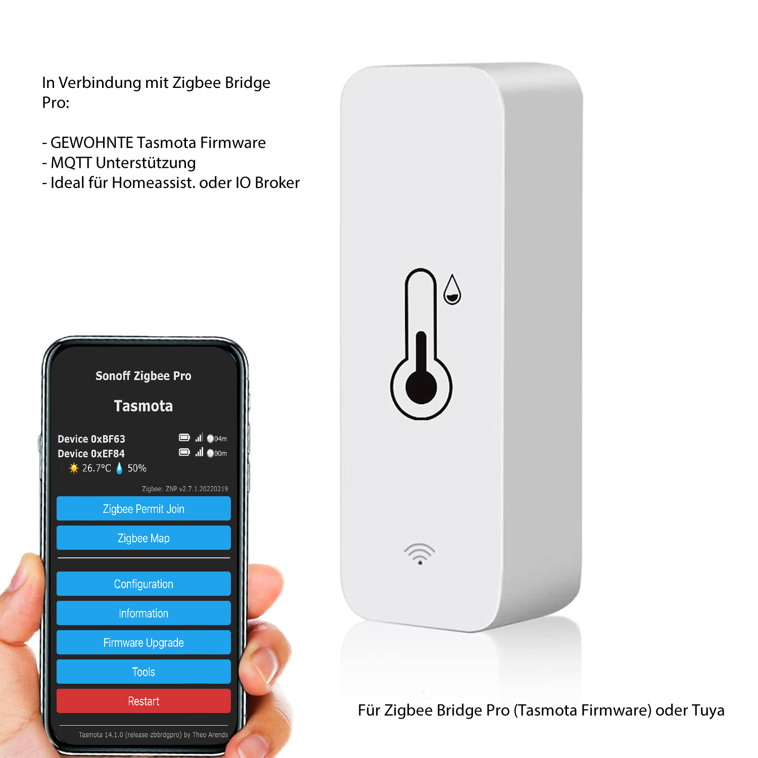 Zigbee Temperatursensor für Zigbee Bridge Pro (Tasmota Firmware - Cloudfrei) oder Tuya/Smartlife Bridge