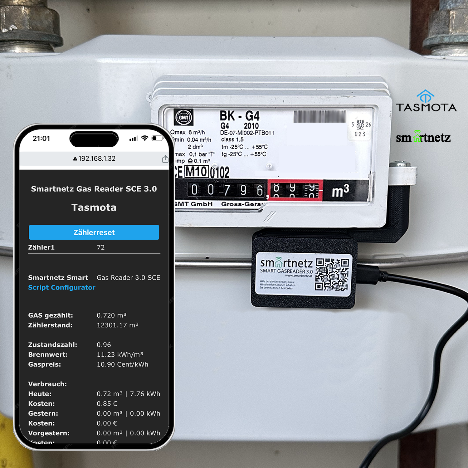 Einziges Problem war das WLan. Ich habe einen Repeater im gleichen Raum in dem sich auch der Gaszaehler befindet, sogar in unmittelbarer Nähe, vermutlich hat der Zaehler (Metallgehäuse) das Wlan Signal abgeschirmt. Nachdem ich den Repeater in eine andere Steckdose gesteckt habe, war aber auch dieses Problem behoben.