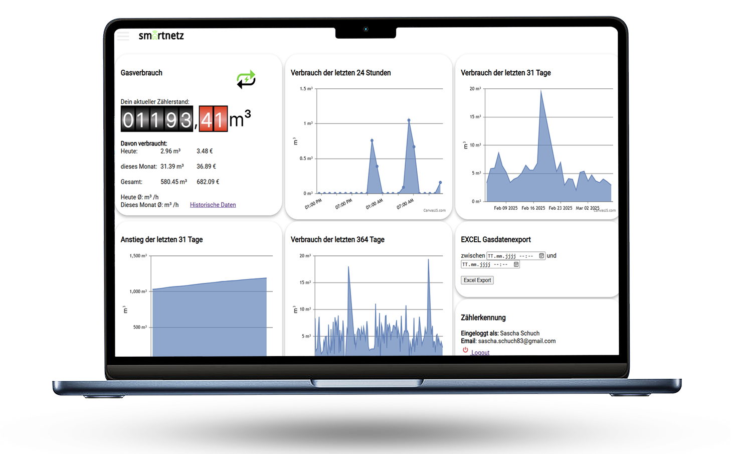 Smartnetz bietet, für registrierte Benutzer, auch ein Dashboard an. Die Registrierung kostet nichts, dafür bekommt man aber interessante Statistiken, lohnt sich aus meiner Sicht.